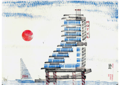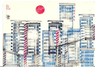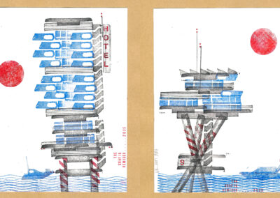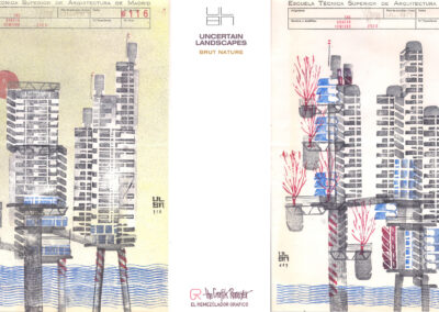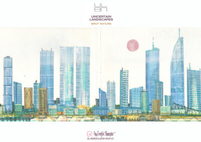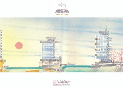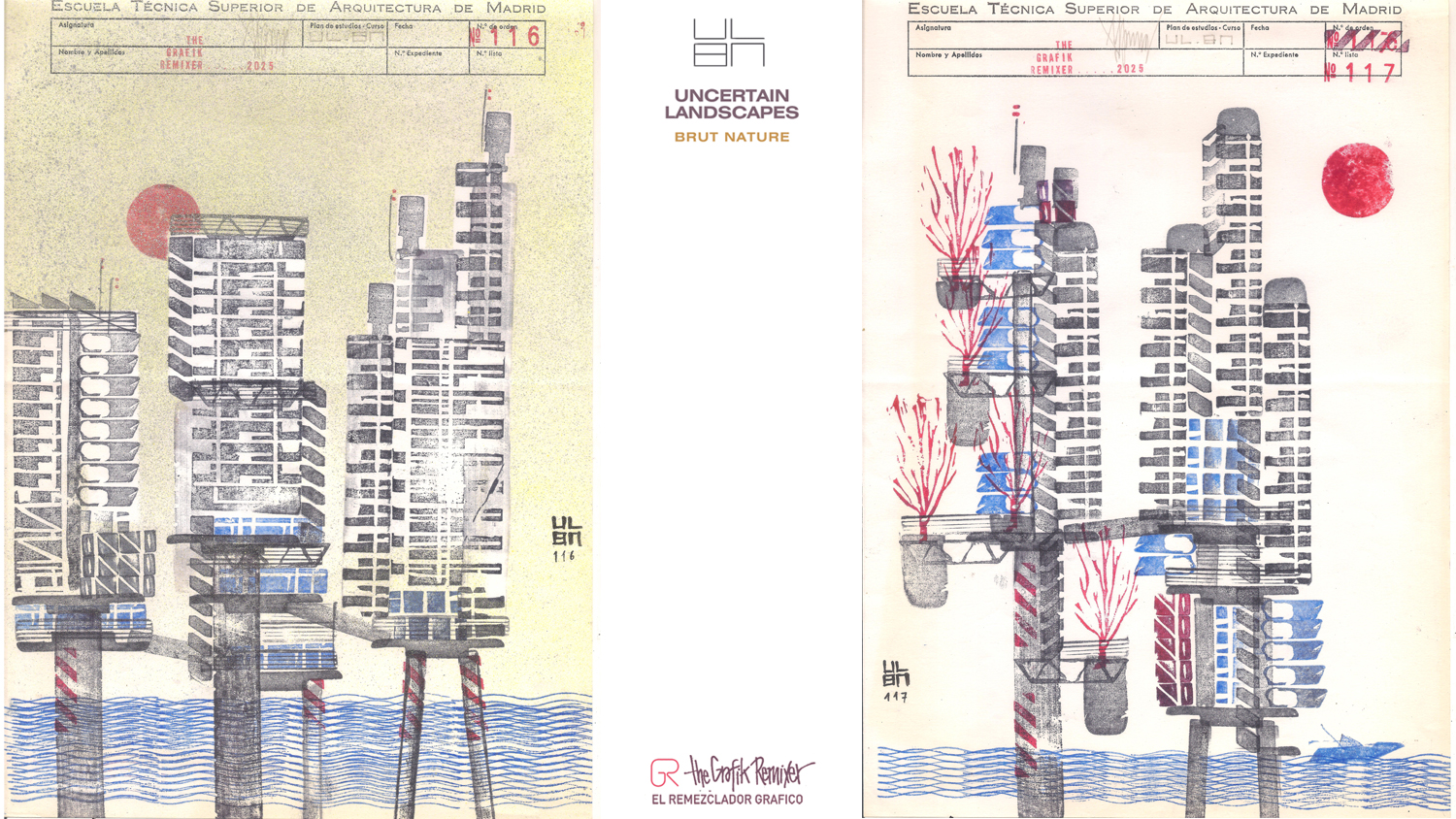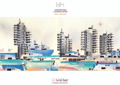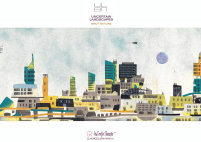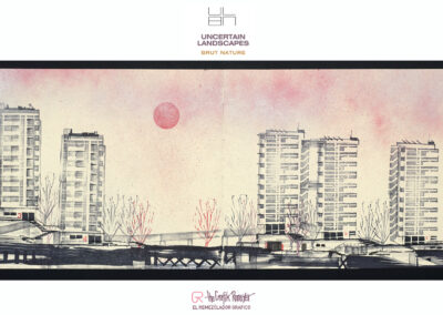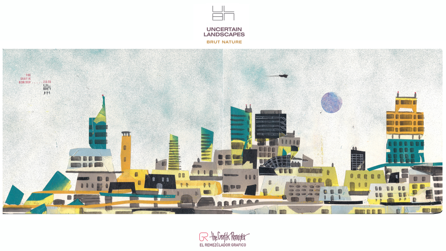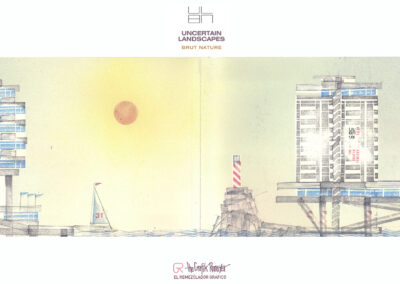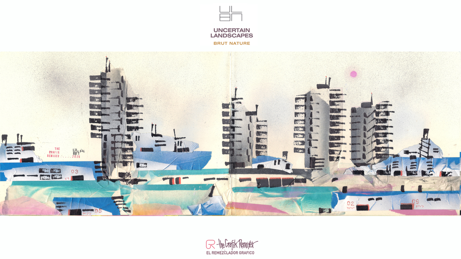 La serie Paisajes Inciertos de Naturaleza Bruta es una colección de estampas como reflejo gráfico de algunas reflexiones sobre el futuro de la habitabilidad del planeta y de la Arquitectura como vestigio de nuestro paso por él.