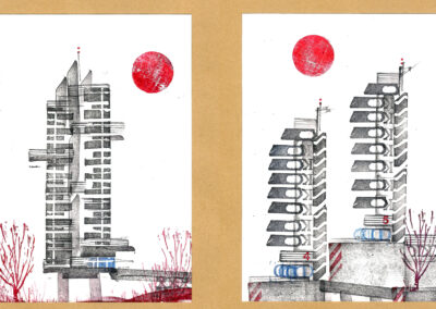 Reflejo gráfico de algunas reflexiones sobre el futuro de la habitabilidad del planeta y de la Arquitectura como vestigio de nuestro paso por él.